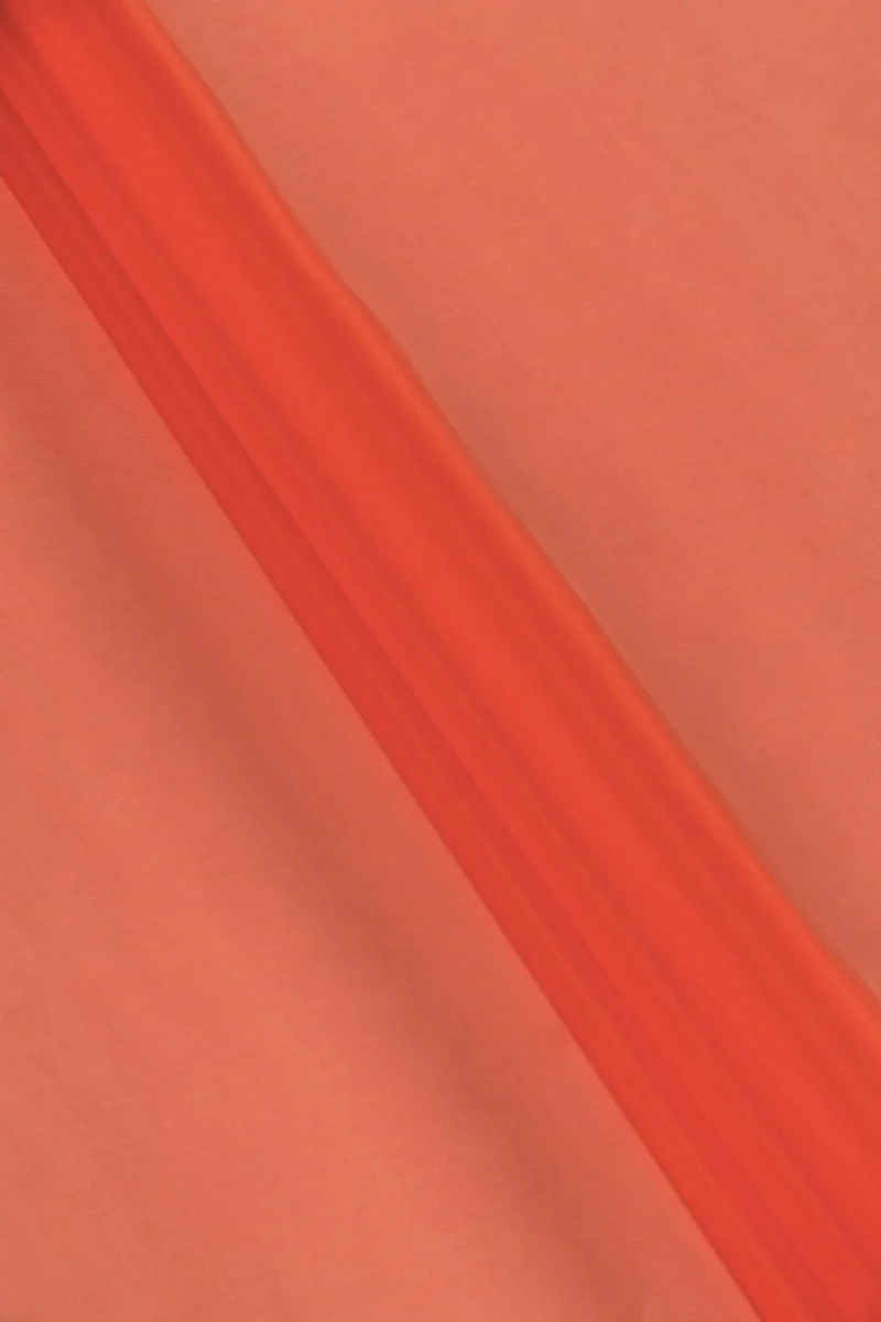 Italian 100% silk organza fabric in hot orange color. Natural silk organza is a thin, transparent but stiff fabric with a delicate shine characteristic of silk fabrics. Perfect for sewing a dress, blouse, shirt, skirt.