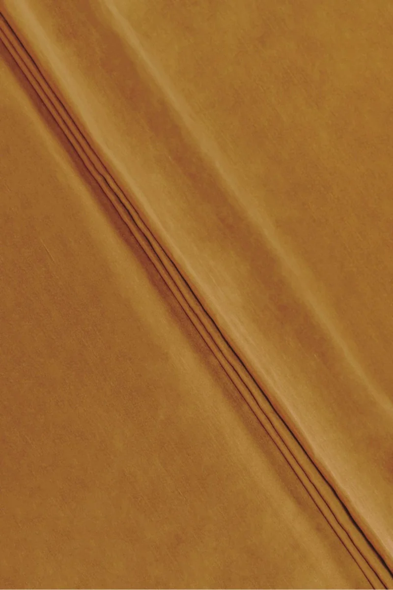 Italian 100% silk shandung fabric, woven from two colors of threads: yellow-gold and burgundy, which create a two-tone effect. The fabric is smoother with slight thickenings.