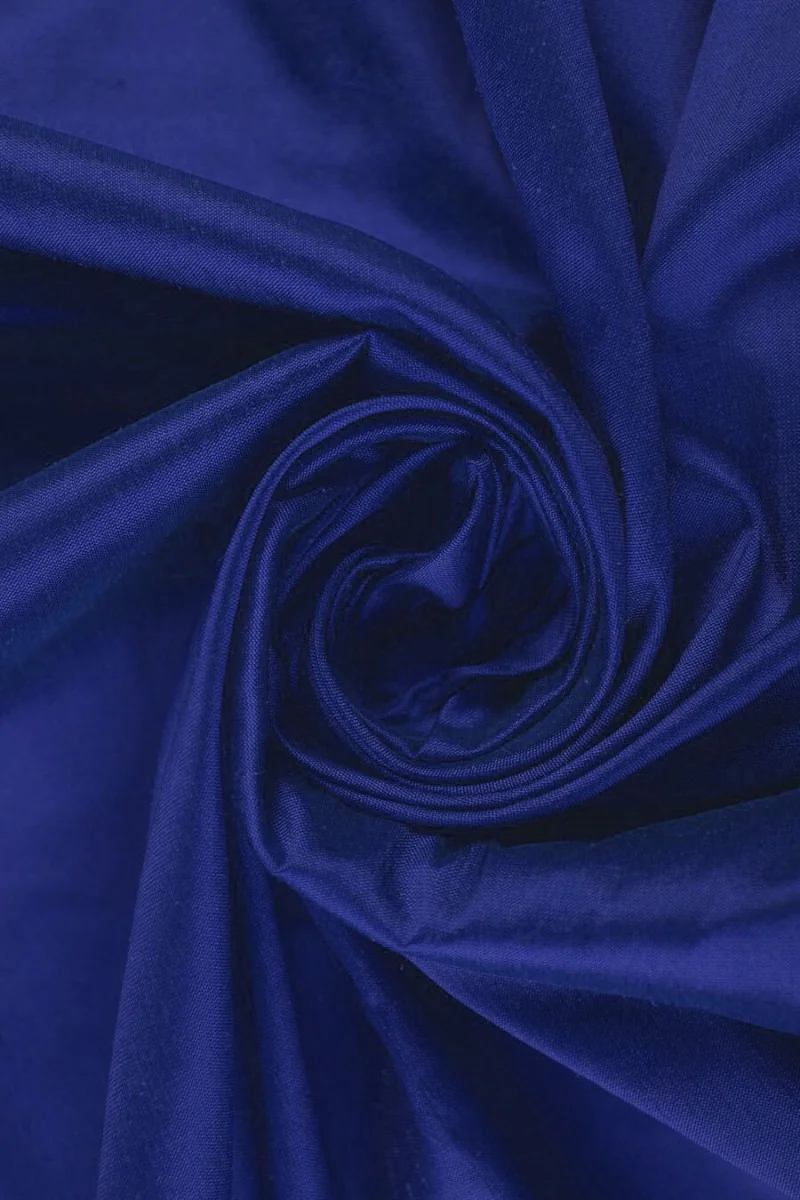 Italian 100% silk shandung fabric, woven from two colors of threads: black and cornflower, which create a two-tone effect. The fabric is smoother with slight thickenings.