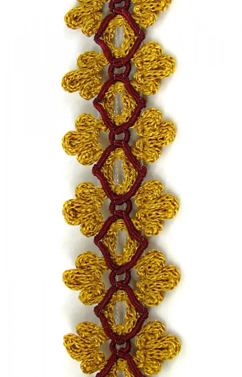 Pasmanteral tape in colors: yellow honey and burgundy. Nice addition of tailors for finishing creations.