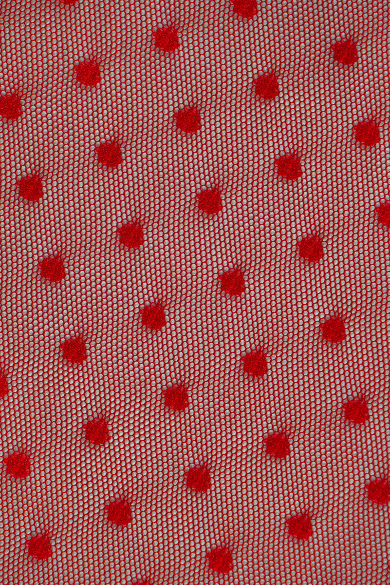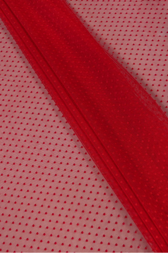 Italian, soft polka dot tulle in red. Elastic fabric on one side, soft, transparent.