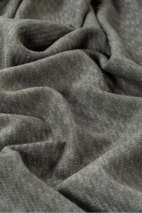 Italian costume fabric of gray color with a drop of green, woven 100% natural wool. Very interesting weave, reminiscent of chanel-type fabrics.