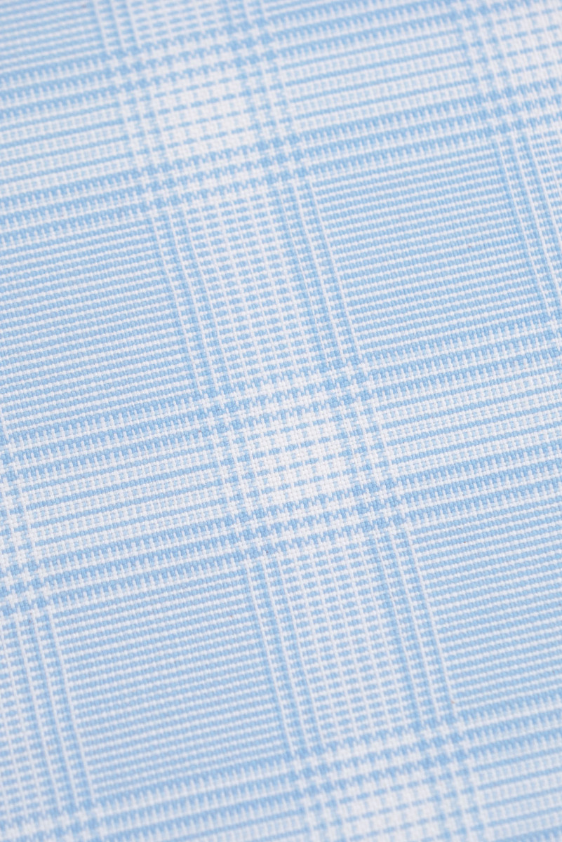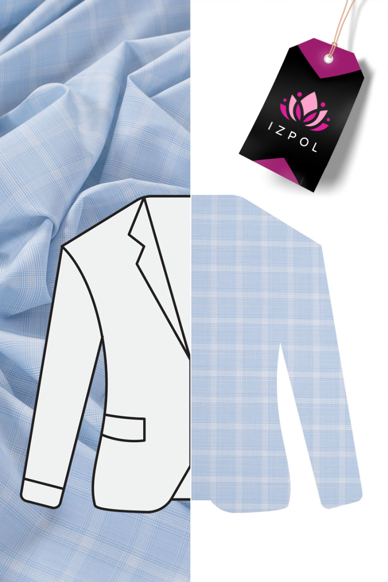 Italian costume wool in blue color with a checkered motif 5 cm wide. Thin fabric, inflexible with a classic weave - ideal for sewing a suit, dress, skirt, costume, trousers. Composition: 100% wool vergin Weight: 230 gr / m
