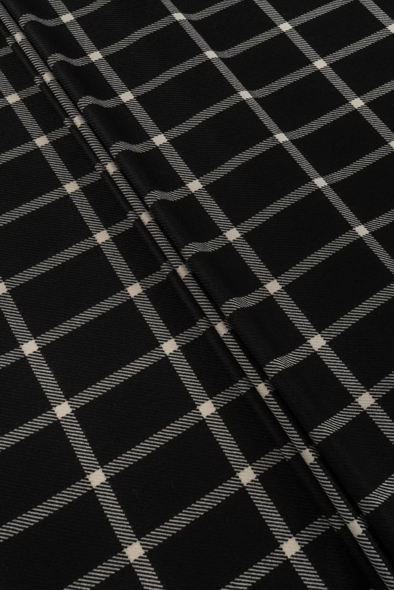 Italian wool with cashmere with diagonal (oblique) weave in black with a motif of cream, large trellis (15*10 cm). The fabric is thicker, fleshy very soft and light of the autumn-winter species.