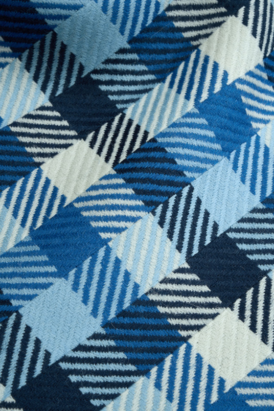 Italian 100% costume wool with a checkered motif in shades of blue, cream and navy blue. The fabric is non-elastic, medium thickness, soft, drapes nicely. A 2 cm * 2 cm checkered pattern, filled with transverse lines that create an additional herringbone motif on the entire fabric. An interesting proposal of wool from the autumn-winter genre for trousers, skirts and dresses.