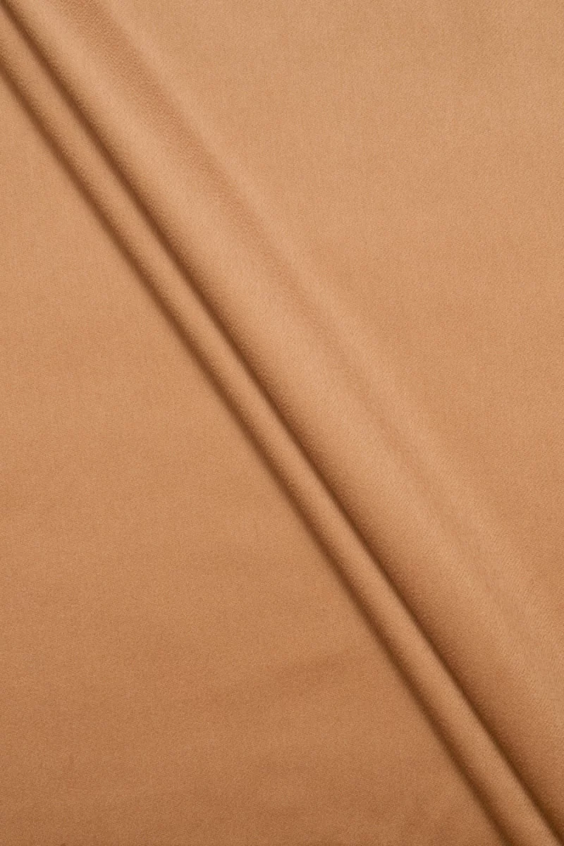 Italian coat fabric woven from natural wool in camel color. Woolen fabrics are ideal for outerwear (coat, jacket, vest) because they warm and at the same time allow the skin to breathe.