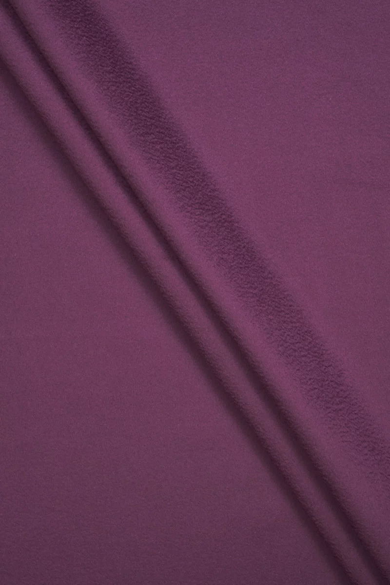 Italian coat fabric woven from natural wool with the addition of cashmere in bleached purple color with a zibellino effect (delicate wavy). Woolen fabrics are ideal for outerwear (coat, jacket, vest) because they warm and at the same time allow the skin to breathe.
