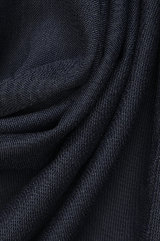 Italian costume wool with the addition of dark navy blue polyester. The fabric is soft, non-elastic, finished with a delicate sheen. Perfect for sewing a costume, trousers, skirt, trousers, dress.