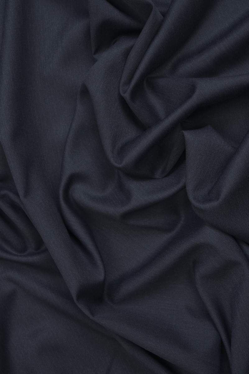 Italian costume wool with the addition of polyester in dark navy blue. Soft, non-elastic fabric, finished with a delicate shine. Perfect for sewing a costume, pants, skirt, pants, dress.