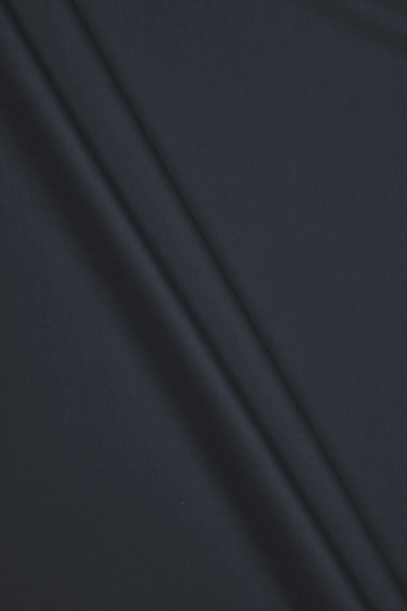 Italian costume fabric made of 100% natural wool. The material is woven from two colors: navy blue and black, which create a two-tone effect. The fabric is inelastic, medium thickness with a nobly shiny weave. It is perfect for sewing a classic suit, dress, skirt or trousers. Natural fabric in a timeless color for people who like dark colors.