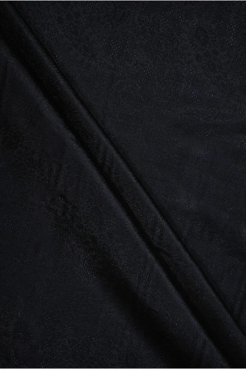 Italian dress fabric woven from a blend of wool and viscose with a jacquard, oriental motif in dark navy blue. The pattern is dense, medium-sized and delicate. Very good quality fabric. It is thin but opaque, soft, inelastic and flowing. We recommend it primarily for dresses, skirts and looser trousers. A great proposition for people who appreciate classics at their best.