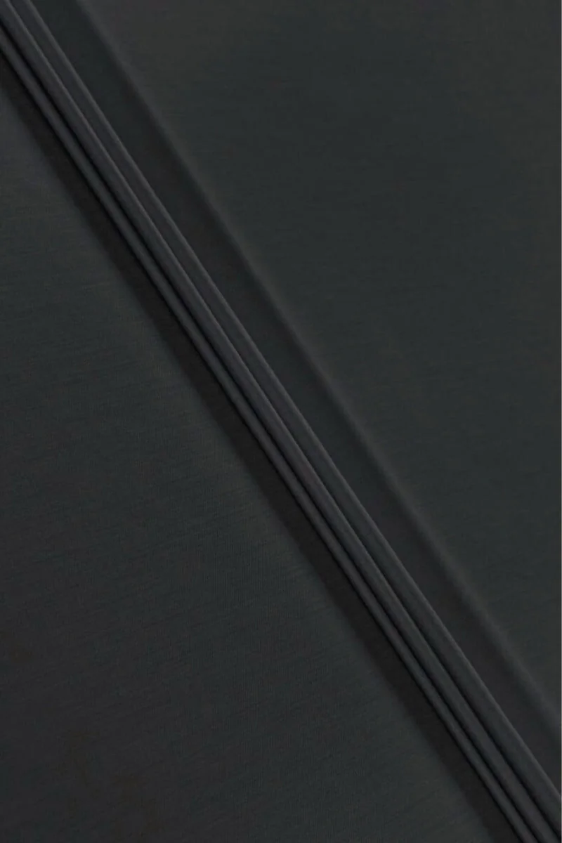 Italian costume fabric made of 100% natural wool. The material is woven from two colors, graphite and black, which create a two-tone effect. The fabric is inelastic, medium thickness with a nobly shiny weave. It is perfect for sewing a classic suit, dress, skirt or trousers. Natural fabric in a timeless color for people who like dark colors.