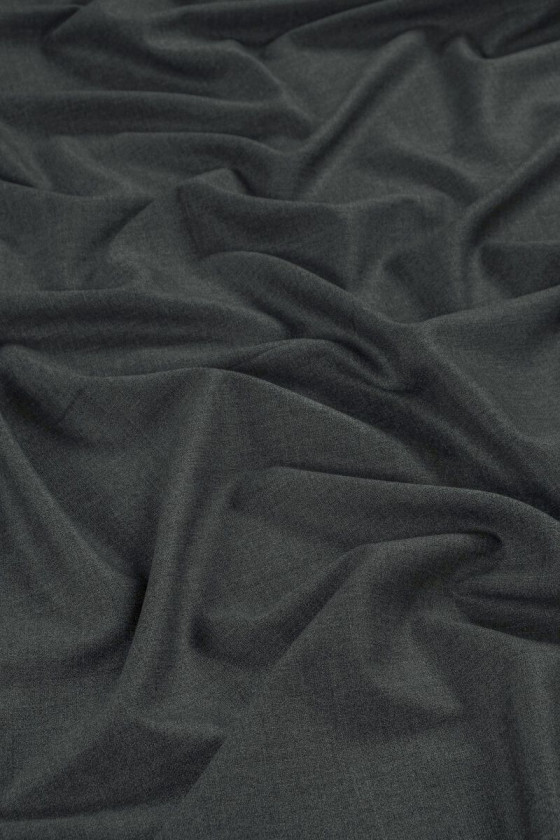 Italian costume fabric woven from 100% natural wool in dark ash color. A material with a classic thickness intended for jackets, trousers or costumes.