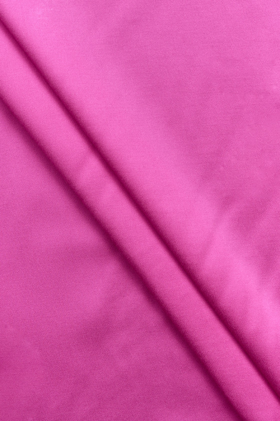 Italian viscose satin in pink. The fabric is soft, flowing, elastic, delicate to the touch and opaque. It drapes beautifully and the satin finish adds elegance to it. It can be used to conjure up airy dresses, skirts, tops or blouses. It can also be used as a base for more delicate fabrics and laces.