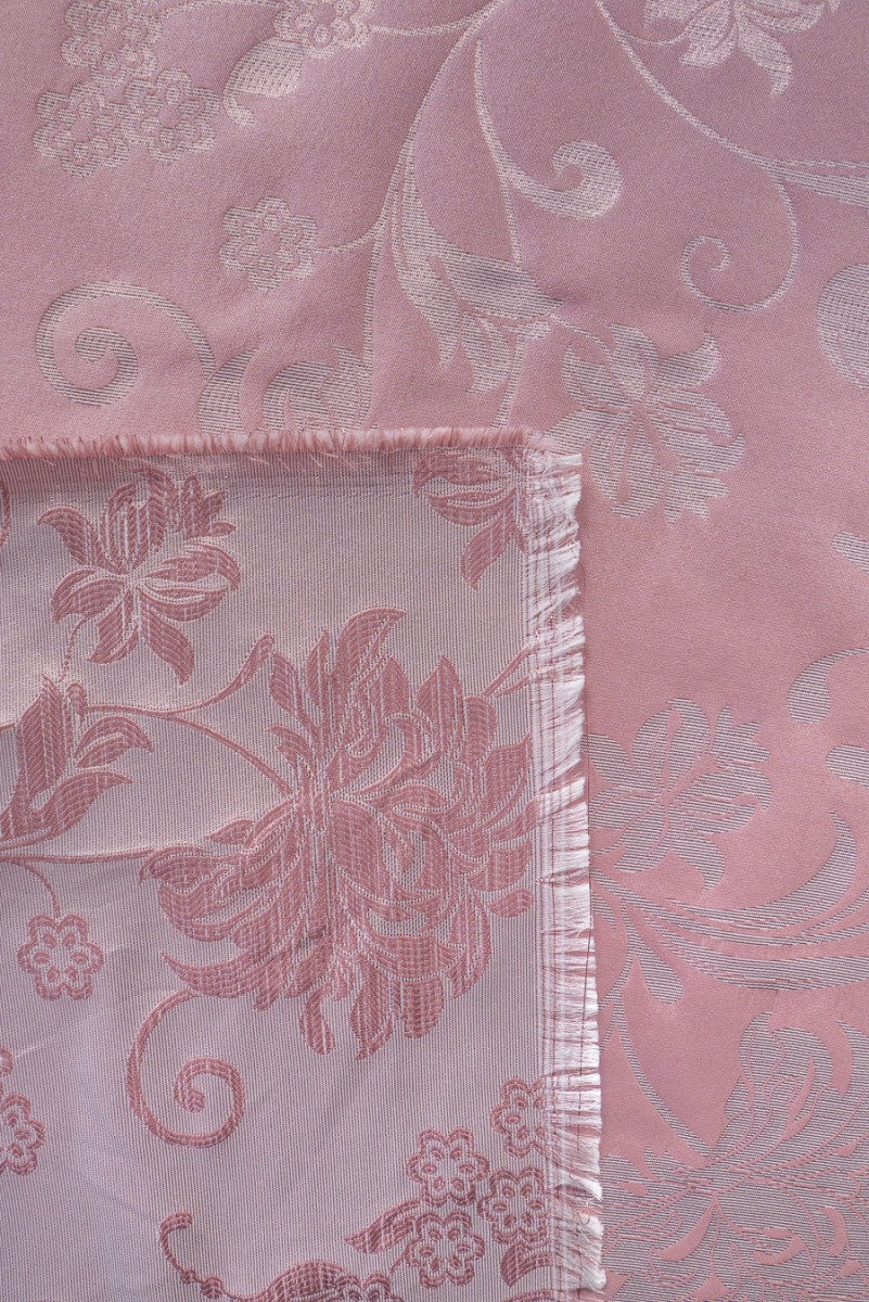 Italian jacquard costume fabric with a floral motif. The background is made in light pink and the motif of flowers and leaves in ecru color, additionally decorated with a shiny thread in rose gold. The fabric, on the other hand, has the opposite color - it can be sewn on both sides. The fabric is slightly stiff, the background is matte and the pattern is slightly shiny, which gives it a subtle elegance. It is perfect for sewing dresses and costumes for family celebrations, as well as a decorative fabric