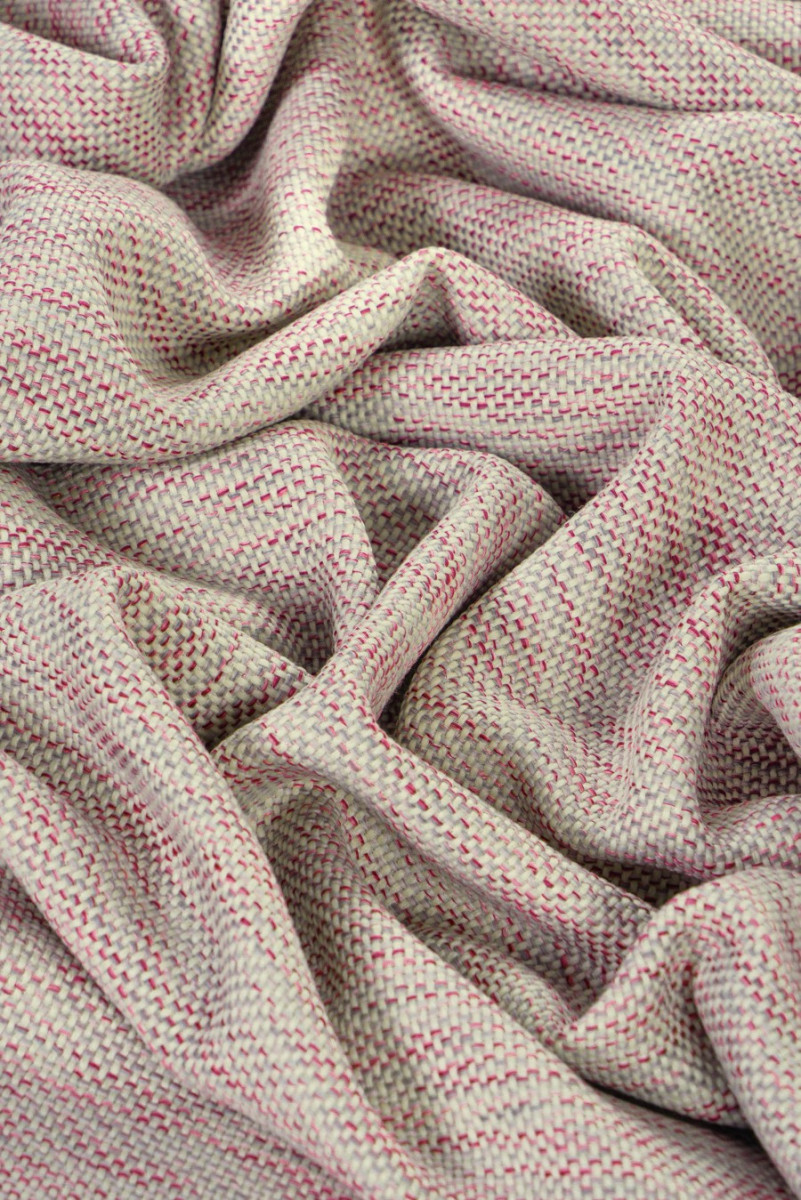 Suurepärane hind! Chaneli kangas, mis on kootud villast ja polüamiidist ekru ja roosa fuksia värvides, millele on lisatud helehalli. Ideaalne kevadjakkide ja mantlite õmblemiseks