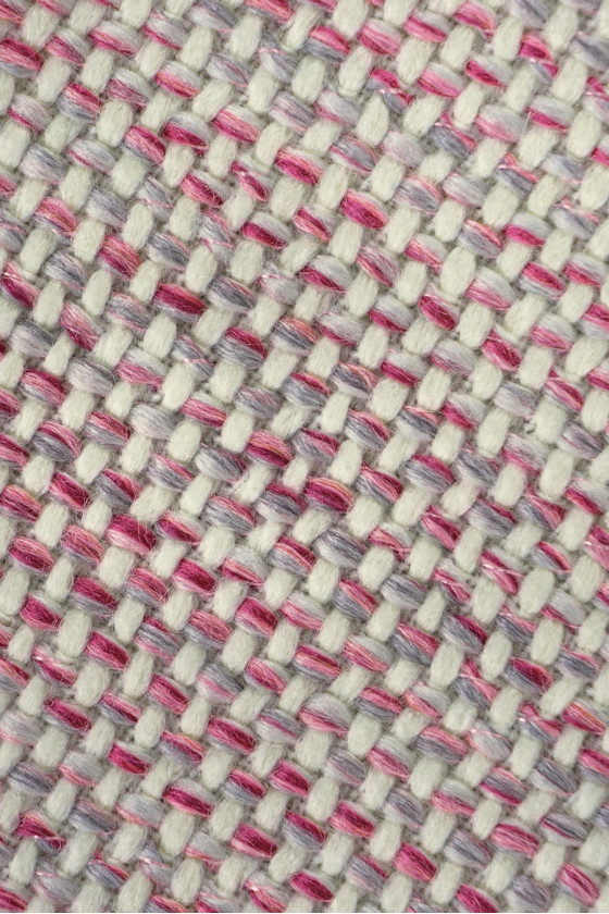 Suurepärane hind! Chaneli kangas, mis on kootud villast ja polüamiidist ekru ja roosa fuksia värvides, millele on lisatud helehalli. Kanga kaal sobib ideaalselt vedrujakkide ja mantlite õmblemiseks. Soovitame valida voodriosast sobiva voodri.