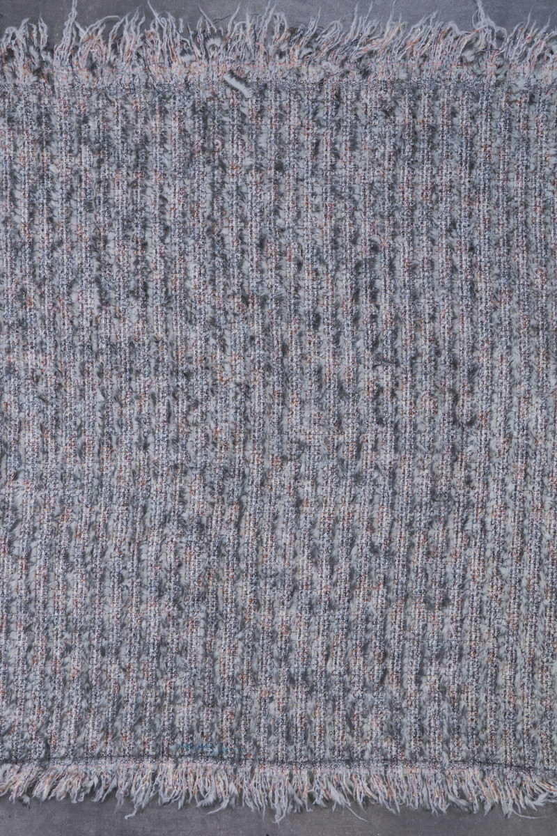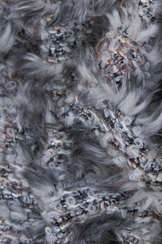 Eksklusiivne, originaalne chaneli kostüümikangas moes värvides põimitud kunstkarusnahast ala küülikuga. Soovitame seda jakkide, vestide, kardiganide, ponchode või suurte sallide õmblemiseks.