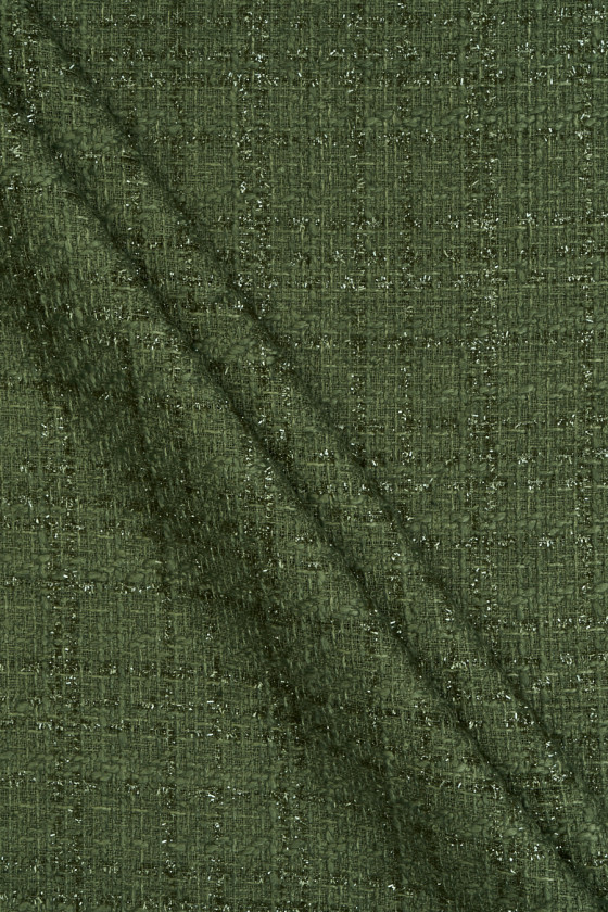 Itaalia chaneli kostüümikangas oliivrohelises, millesse on kootud lurex-niit. Ideaalne selliste komplektide jaoks nagu: jope + seelik või kleidid. Seda saab kasutada ka õhukese üleminekukihi õmblemiseks.