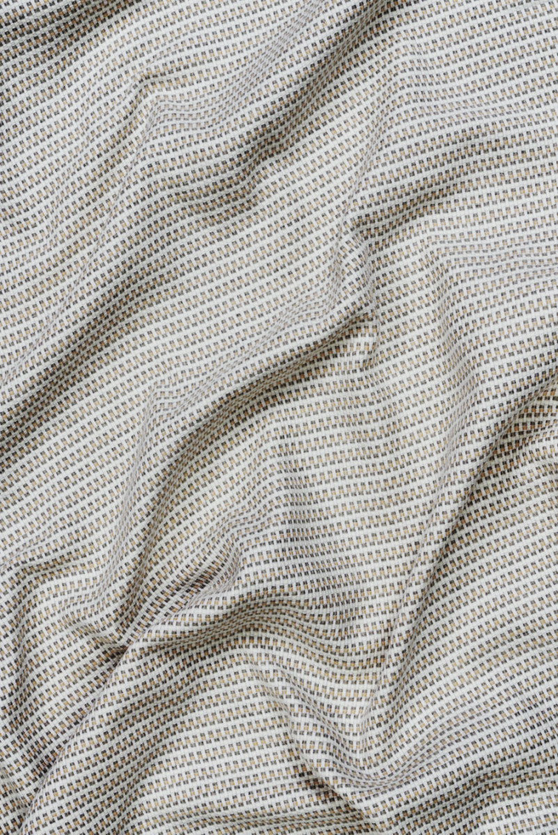 Puuvillast kootud pastelsetes toonides Itaalia chaneli kostüümikangas. Õrn põimitud niitide muster väga helebeeži, heleoranži ja hallikasbeeži värviga. Kangas on pehme, matt, keskmise paksusega, kergelt lahtise koega. See sobib suurepäraselt jope, seeliku või kleidi jaoks.