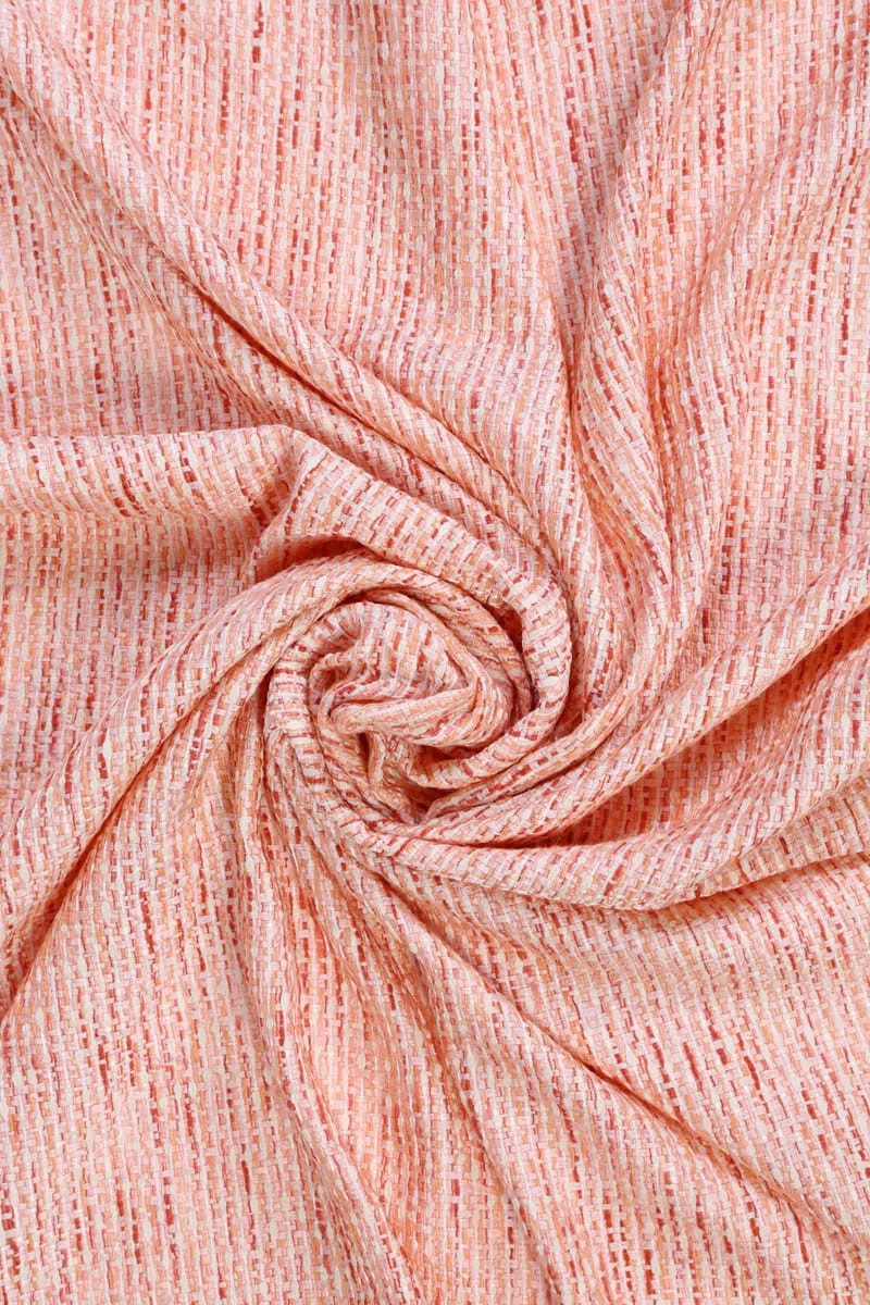 Ilus klassikaline chaneli kostüümikangas soojades toonides - oranž, ecru ja punane. Ideaalne vedrukomplektidele: jope ja seelik. Seda saab kasutada ka õhukestel mantlitel või kleitidel.