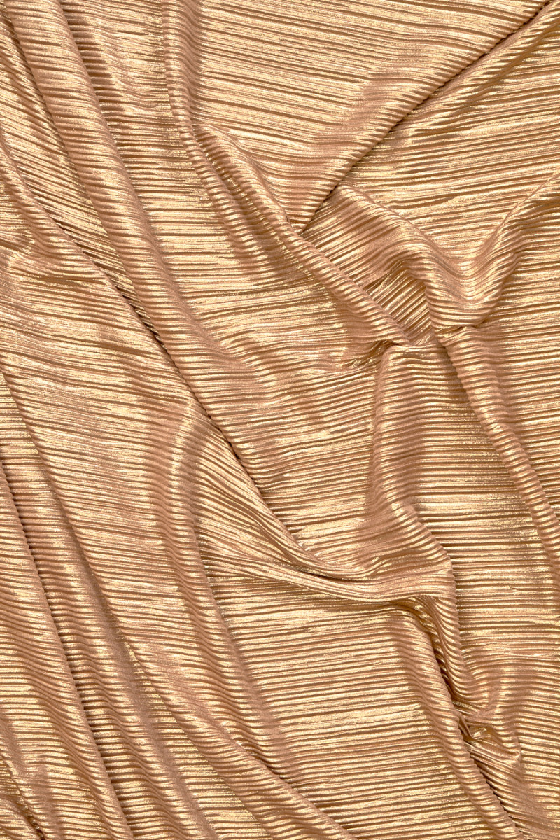 Itaalia polüesterkangas, plisseeritud kuldkaramelliga. Materjal on paindlik, läikiv, kerge ja pehme. See sobib suurepäraselt nii ametlike rõivaste kui ka igapäevaste, näiteks kleitide, pluuside, seelikute õmblemiseks.