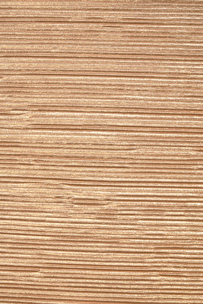 Itaalia polüesterkangas, plisseeritud kuldse karamelli värviga. Materjal on kergelt elastne, läikiv, kerge ja pehme.