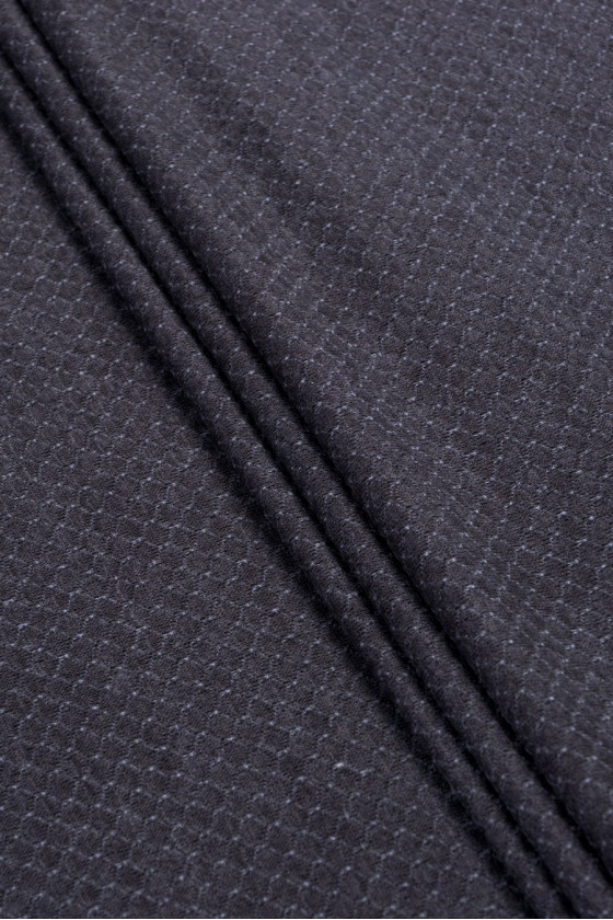 Õhuke kampsun silmkoekangas tumehalli värvi, kootud villasest lõngast -30% ja akrüülist 70%. Kudumismuster loob väikesed teemandid. Soovitame seda kampsunite, õhukeste kardiganide või sallide õmblemiseks.