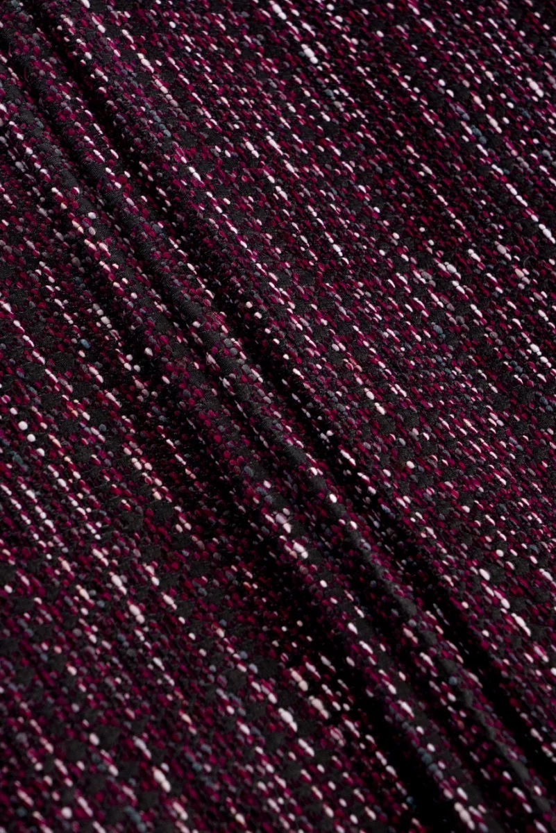 Itaalia kostüümikangas mustas, kootud niitidega ekru, fuksia ja lilla. Kootud naturaalsest villast viskoosi seguga.