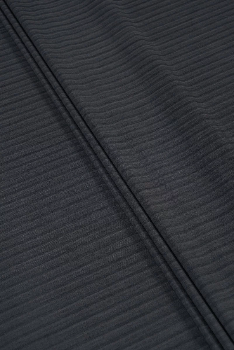 Itaalia kostüümivill triipudega, 2 cm laiune, must ja hall - kahetooniline. Pehme, lihav, mitteelastne kangas.