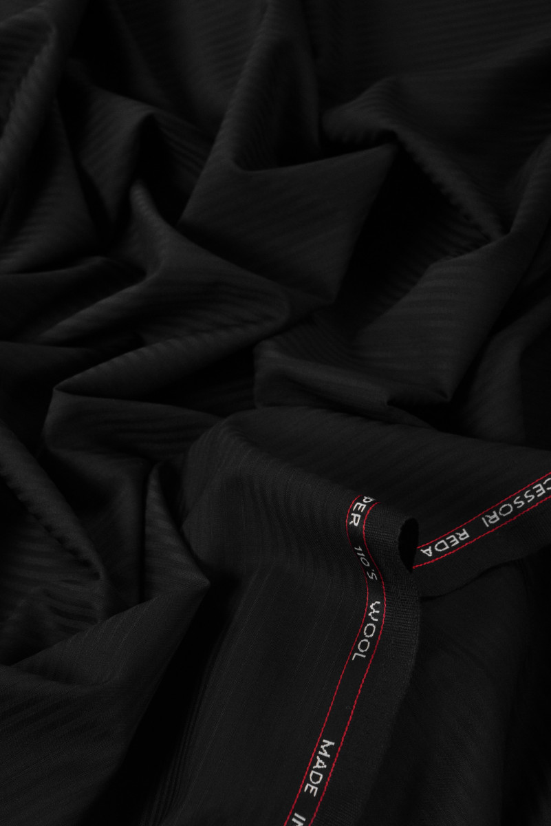 Itaalia kostüümivill mustas, 0,5 cm laiuste triipudega. Pehme, klassikaline-paks, mitteelastne kangas - ideaalne kostüümi, ülikonna, pükste, seeliku, kleidi õmblemiseks.