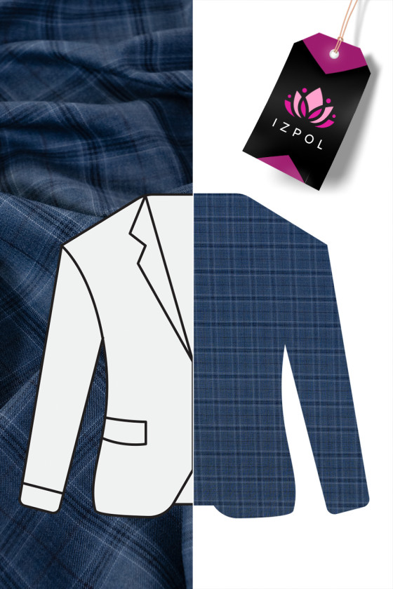 Itaalia kostüümivill hele tumesinine, 5 cm laiuse kontrollmotiiviga. Pehme, mitteelastne kangas klassikalise kangaga.