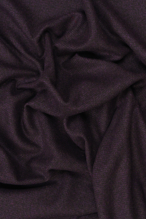 Itaalia villane kangas mustas ja lillas, millel on tavaline kudumine peene kuhjaga. Sügis-talvine kangas, paksem, mitteelastne - ideaalne kostüümi, kleidi, seeliku, jope või õhukese mantli õmblemiseks.