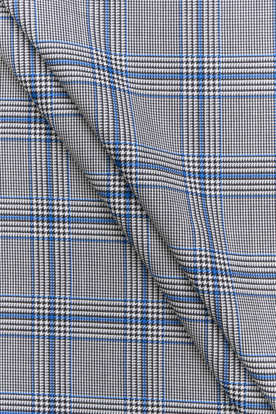 Kvaliteetne Itaalia kostüümikangas, millel on suur sinine ruuduline motiiv kreemikal mustal taustal. Paksem, mitteelastne kangas, sügis-talvine, kahepoolne - teine pool on valmistatud sinisest. Võre suurus 10cm*10cm. Fantastiline ettepanek jope, kleidi või seeliku loomiseks.