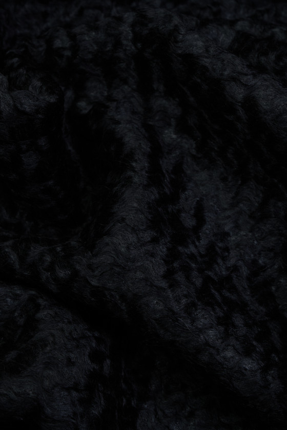 Itaalia karakul-tüüpi mantelkangas mustas. Kangas, millel on iseloomulik laineline hunnik, kootud looduslikust villast ja mohäärist. See sobib ideaalselt ülerõivaste jaoks, nagu mantel, jope, vest. Soovitatav on keemiline puhastus.
