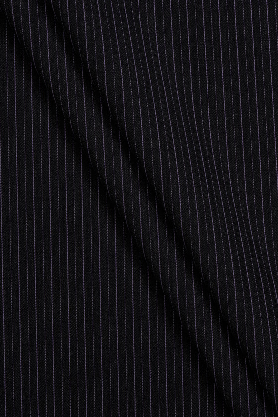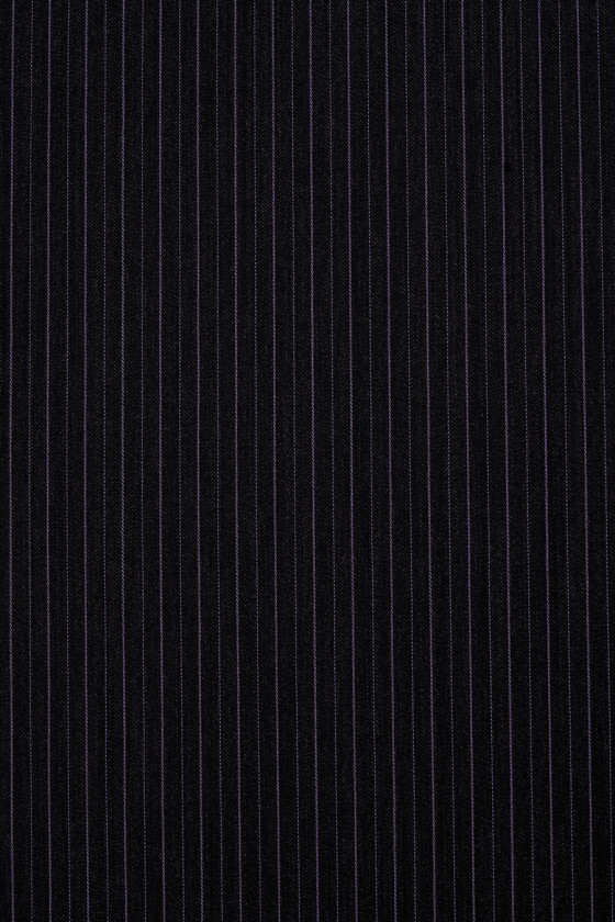 Itaalia kostüümikangas, mis on kootud villast ja siidist tumedas grafiidis, õhukeste triipudega lilla. Kahe laiusega ribad (minimaalne erinevus) on jaotatud vaheldumisi ja paigutatud iga 5 mm järel. Kangas on pehme, lihav, mitteelastne. Ideaalne kostüümi, ülikonna, pükste, seeliku, kleidi õmblemiseks.