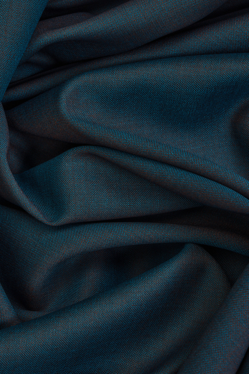 Itaalia kostüümikangas, mis on kootud 100% villast kahest värvi niidist - türkiissinine ja pruun, ainulaadne, luues kahetoonilise. Tihedalt kootud kangas, õhuke, mitteelastne, pehme, õrn ja matt. Ilus, klassikaline ettepanek ülikondade, kleitide, seelikute jaoks.