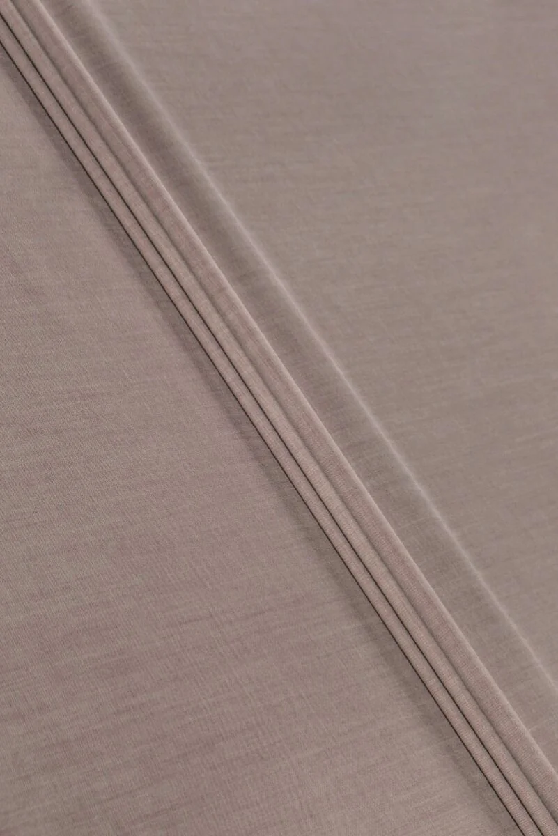 Itaalia kostüümikangas, mis on valmistatud looduslikust Vergini villast, millele on lisatud siidi ja elastaani segu. Materjal on kootud kahest värvi kakaolõngast ja hallikaslillasest toonist, mis loovad kahetoonilise efekti. Kangas on elastne, keskmise paksusega, kudumiga, mis meenutab väikest sõrmenukki. Siidi lisamine annab sellele väärikust ja õrna läike. See sobib ideaalselt klassikalise ülikonna, kleidi, seeliku või pükste õmblemiseks. Looduslik kangas originaalses toonis inimestele, kellele meeldivad huvitavad värvid.