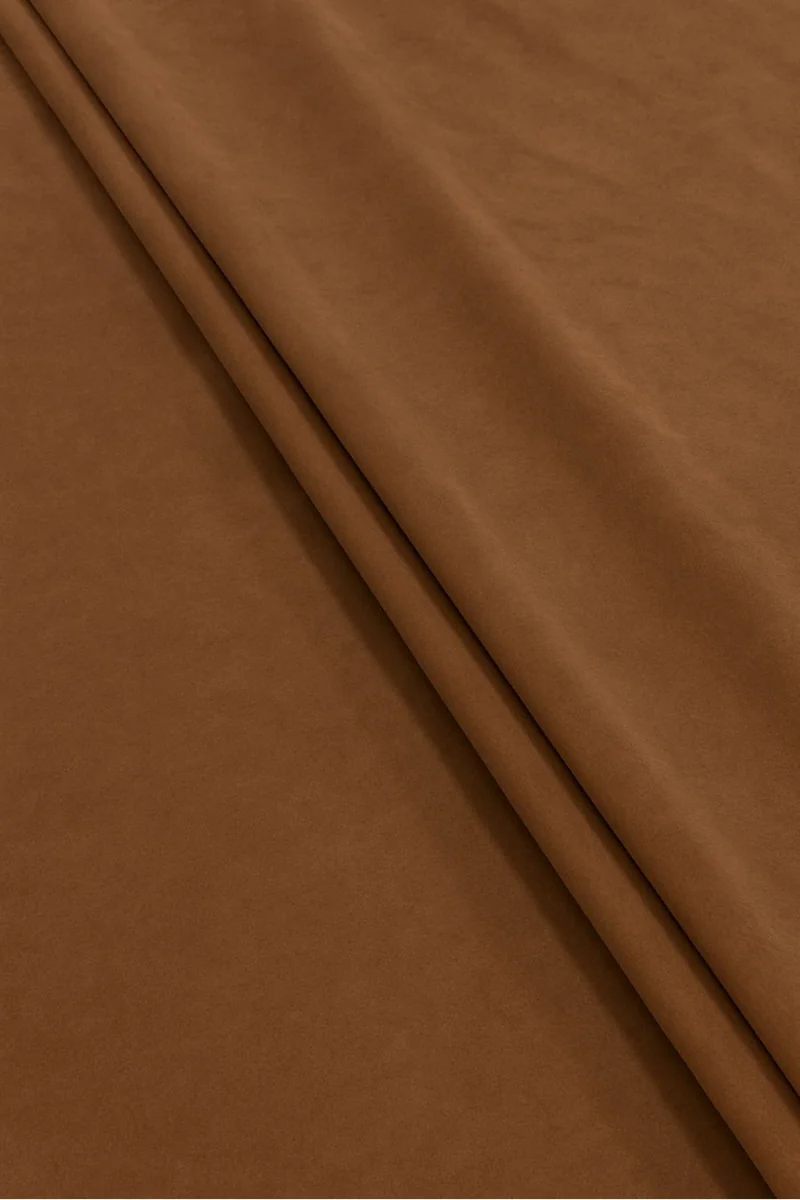 Itaalia Alcantara kangas iirises – helepruun. Materjal on paksem ja painduv, mõlemal küljel on iseloomulik seemisnahataoline harjas. Väga pehme ja meeldiv katsuda. See sobib ideaalselt seeliku, kleidi, jope või mantli õmblemiseks.