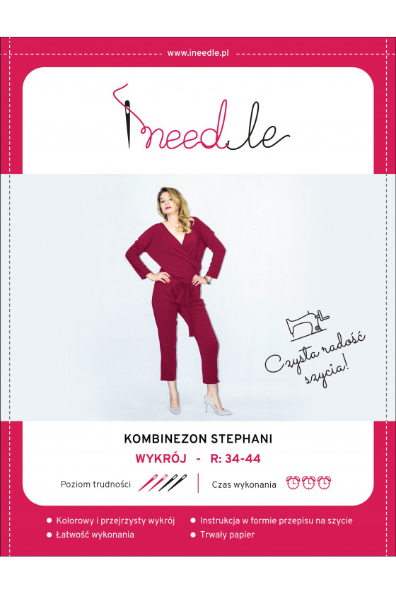 Stephani jumpsuiti muster asetatakse väga suurele paberilehele, millel on selgelt joonistatud suurused (iga suurus on määratletud eraldi värviga), nii et õige leidmine pole teile kindlasti keeruline. Lisaks leiate mustri kõrvalt väga praktilisi näpunäiteid; Kuidas mõõta siluetti ja valida õigesti dressipluusi suurus, kuidas mustrit joonistada, millises järjekorras kangast lõigata, samuti näpunäiteid valitud mudeli õmblemiseks.