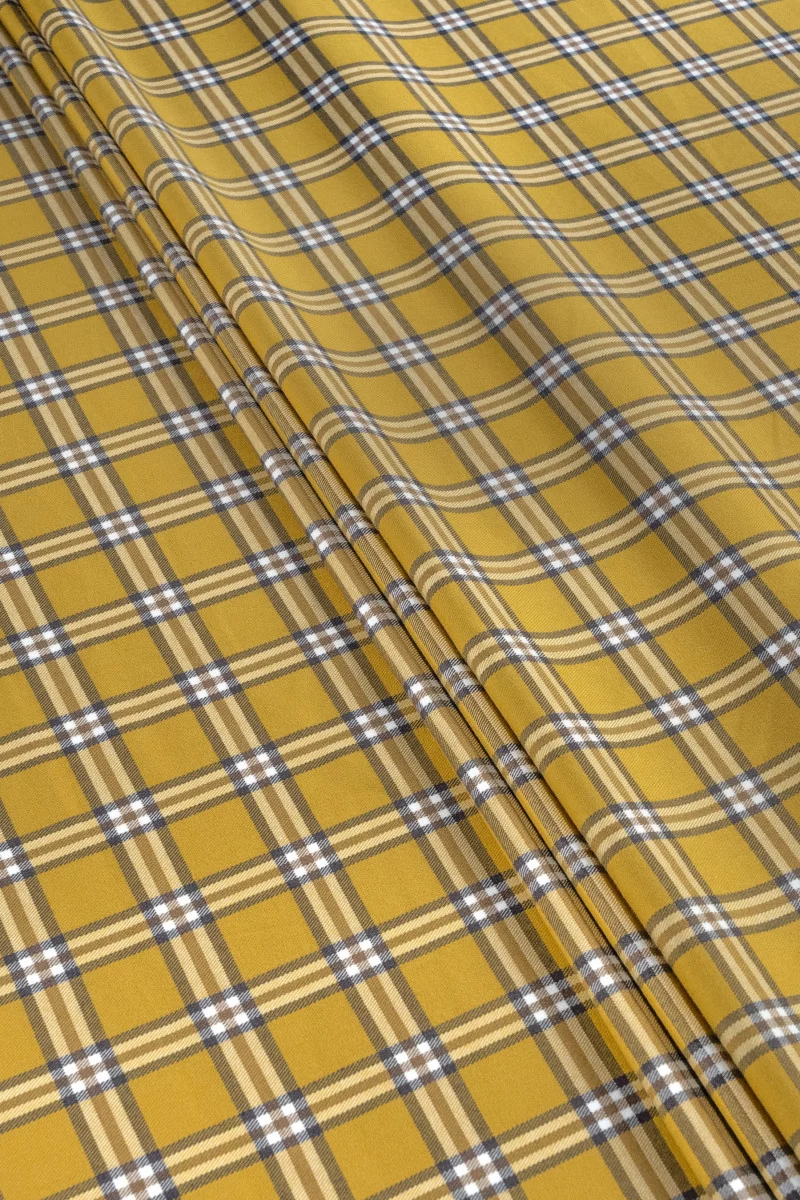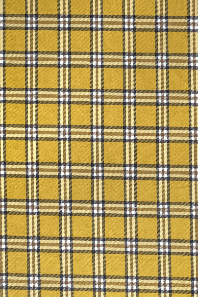 Itaalia kostüümikangas beeži ja sinepi värviga, ruudulise motiiviga 2,5–3,5 cm suurune. Pehme, lihav, kergelt elastne kangas - polüestri, viskoosi ja elastaani segu.
