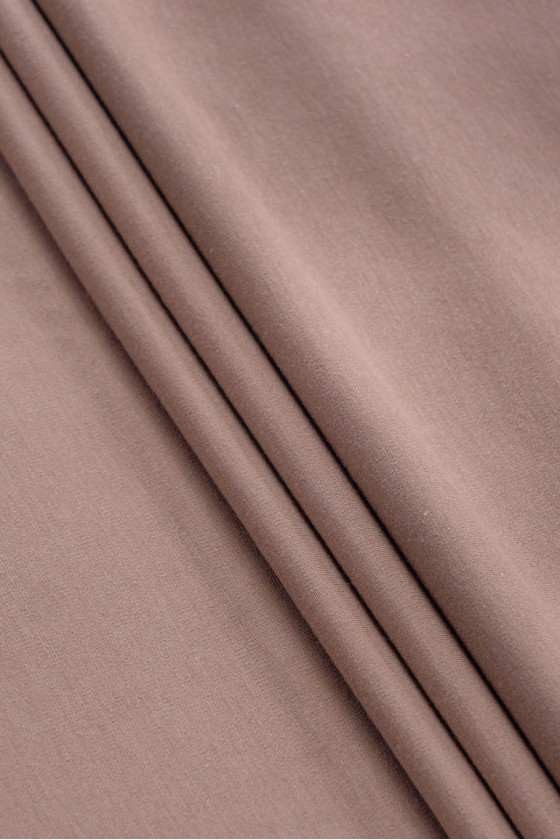 Jersey silmkoekangas määrdunud roosas. Kootud kangas 94% polüestri, 6% elastaaniga (elastne). Soovitame seda mugavate riiete õmblemiseks - kleidid, seelikud, spordidressid.