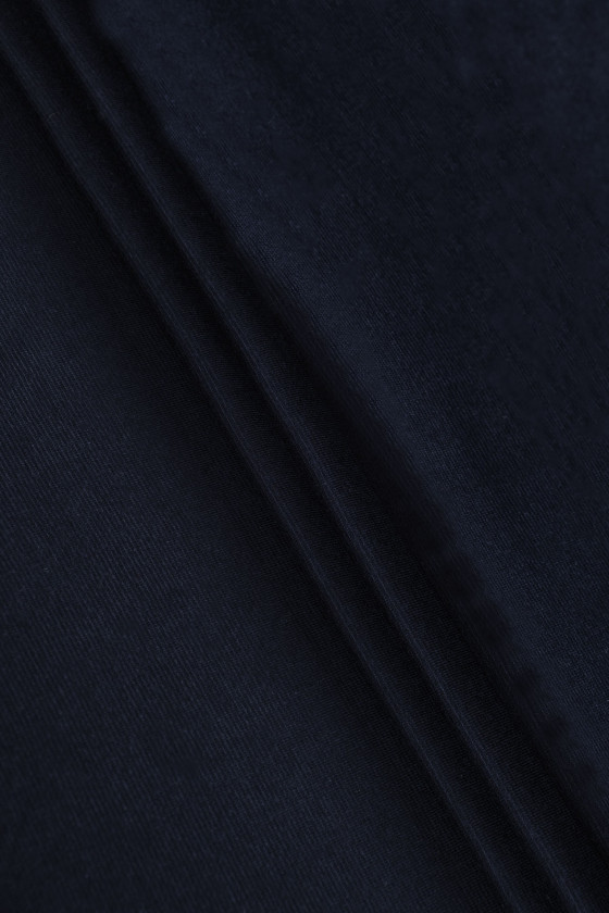 Itaalia viskoosist soonikkoes silmkoekangas tumetumesinises. Kangas on 45 cm laiuses "varrukas".
