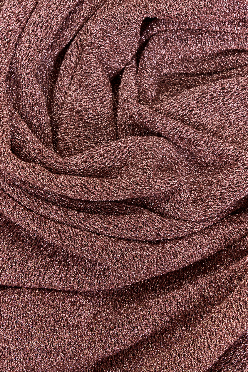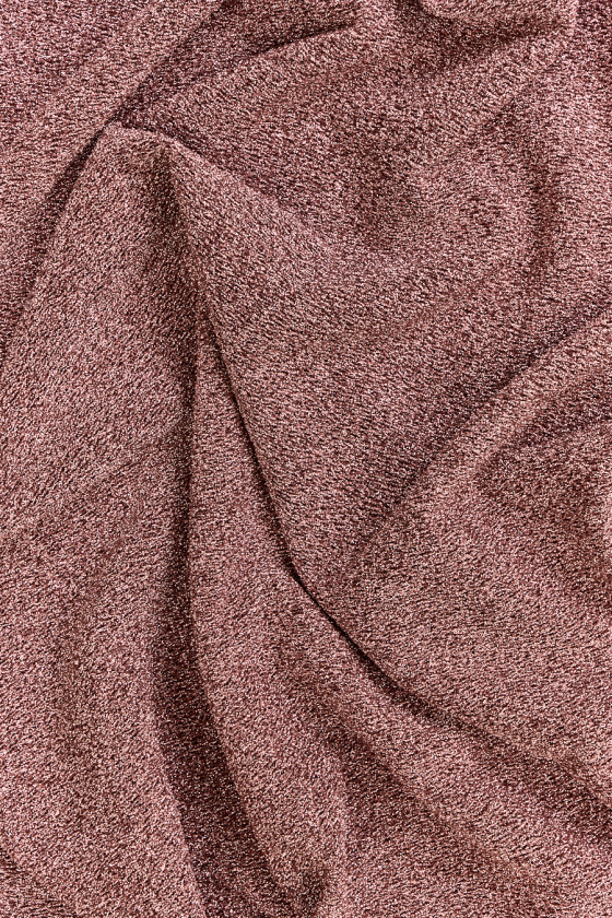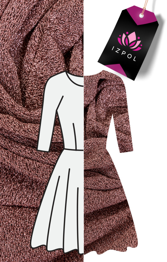 Itaalia vasevärvi polüestrist silmkoekangas tilga roosaga, georgette kudu lurex niidiga. Kangas on kergelt elastne, läbipaistmatu, väga tõhus, vaskniit loob kergelt kumera struktuuri. Ideaalne ettepanek pluuside, kleitide, väljasõidu- ja lavategelase seelikute jaoks.