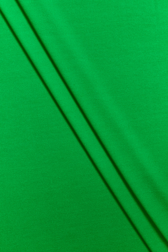 Itaalia viskoosist silmkoekangas rohelise georgette kangaga. Kangas on matt, lihav, elastne, voolav ja puudutades jahe. Suurepärane võimalus suverõivaste jaoks, nagu kleidid, seelikud või pluusid, sobib hästi paigaldatud riietele.