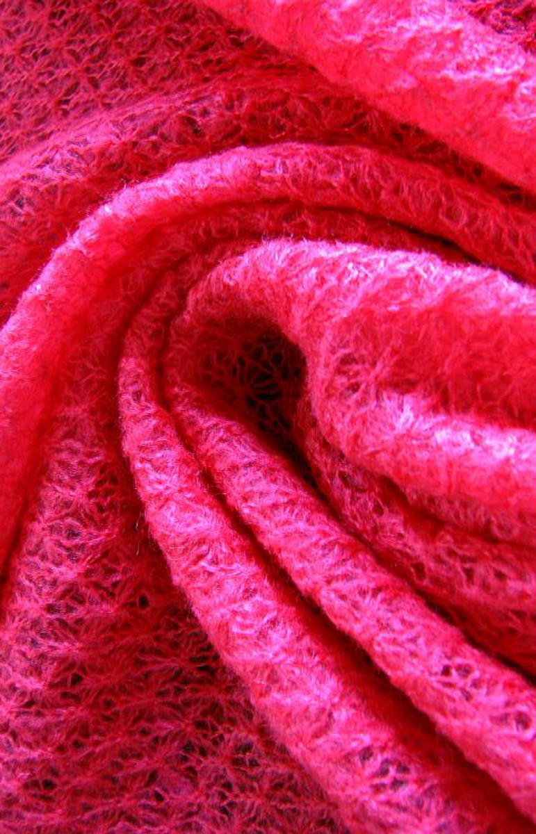 Itaalia kampsun kootud kuuma roosa - roosa. Ahžuurse struktuuriga õhuke kangas, elastne - sobib suurepäraselt kampsuni või salli õmblemiseks.