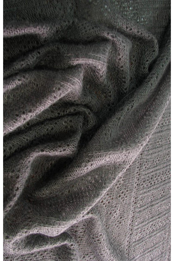 Ažuurne kampsun silmkoekangas, mis on kootud akrüül- ja villaniitidest heleda tuha värviga.