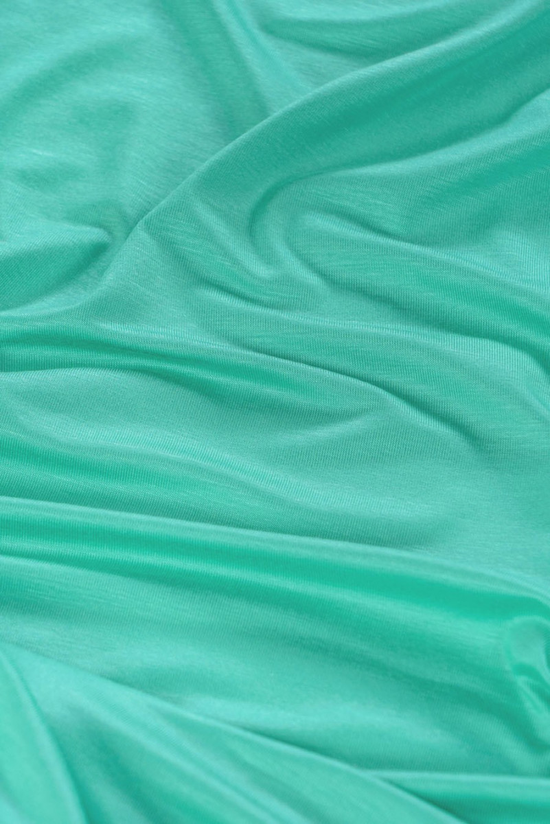 Itaalia viskoosist silmkoekangas helerohelises türkiissinises - väga hea kvaliteediga. Õrn puudutus, paindlik ja kerge sära. Ideaalne pluusi või t-särgi õmblemiseks.