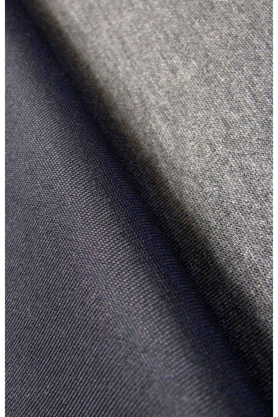 Kahepoolne viskoosist silmkoekangas. Keskmise paksusega elastne kangas. Üks külg on tumesinine, teine pool on hall melange. Ideaalne kleitide ja seelikute jaoks.