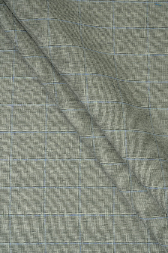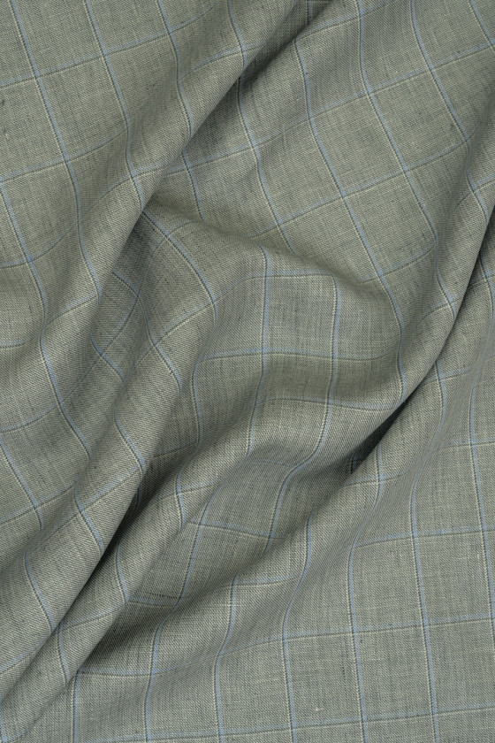 Itaalia 100% linane kangas ruudulise mustriga, 4,5 cm lai. Kogu asi on summutatud rohelises, kreemika niidi ja sinise kontrollmotiiviga. Väga huvitav ettepanek suveülikonna, jope, pükste või jope õmblemiseks.